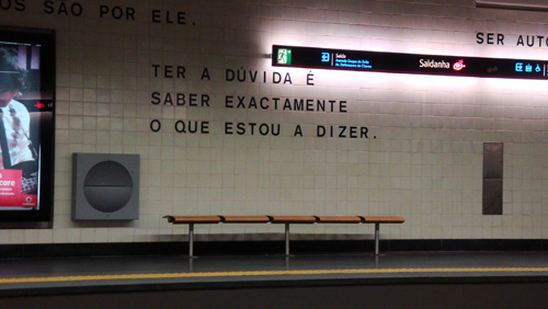 A notícia do Público explica tudo o que interessa saber sobre a iniciativa de Octávio Pinho, que com a ajuda da Associação Portuguesa de Arte Urbana (Apaurb) e de algumas centenas de voluntários, têm estado a pintar o túnel desde Agosto (eu só fiquei a saber de tudo isto na semana passada). A Câmara e as empresas que gerem a estação autorizaram (a custo zero) o projeto e envolveram-se entretanto na reparação da estrutura (luzes, canalização, etc). Mesmo que as pinturas não durem, sempre foram repostas as condições básicas de segurança e salubridade.